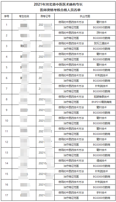 關(guān)于“2021年河北省中醫(yī)醫(yī)術(shù)確有專長(zhǎng)醫(yī)師資格考核合格人員名單”的內(nèi)容,醫(yī)學(xué)教育網(wǎng)小編搜集整理如下: