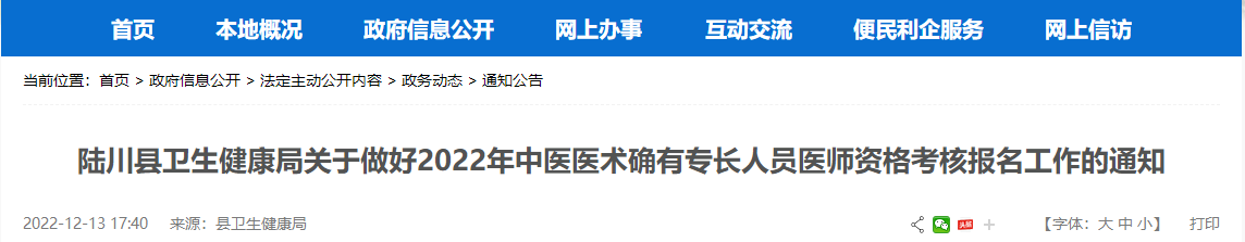 陸川縣衛(wèi)生健康局關(guān)于做好2022年中醫(yī)醫(yī)術(shù)確有專長(zhǎng)人員醫(yī)師資格考核報(bào)名工作的通知