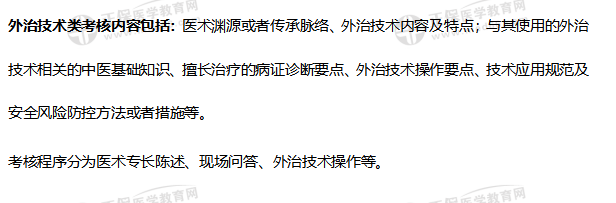 內(nèi)服方藥類考核內(nèi)容包括:醫(yī)術(shù)淵源或者傳承脈絡(luò)、醫(yī)術(shù)內(nèi)容及特點(diǎn);與擅長(zhǎng)治療的病證范圍相關(guān)的中醫(yī)基礎(chǔ)知識(shí)、中醫(yī)診斷技能、中醫(yī)治療方法、中藥基本知識(shí)和用藥安全等。