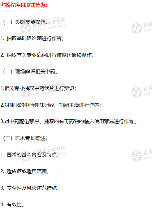 考核程序分為醫(yī)術(shù)專長(zhǎng)陳述、現(xiàn)場(chǎng)問答、外治技術(shù)操作等。