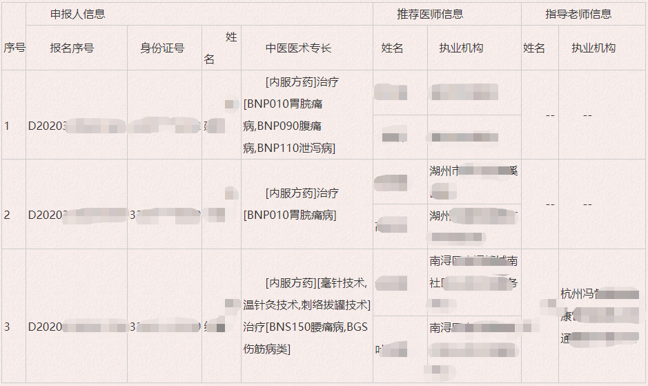 根據(jù)《浙江省中醫(yī)藥管理局關(guān)于做好2020年浙江省中醫(yī)醫(yī)術(shù)確有專長人員醫(yī)師資格考核報(bào)名工作的通知》(浙中醫(yī)藥〔2020〕5號)文件精神,現(xiàn)將南潯區(qū)參加2020年浙江省中醫(yī)醫(yī)術(shù)確有專長人員醫(yī)師資格考核報(bào)名人員信息公示如下: