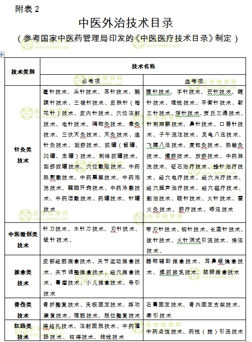 2. 申報的技術方法含外治技術的,根據(jù)《中醫(yī)外治技術考核目錄》(見附表2)進行分類考核: