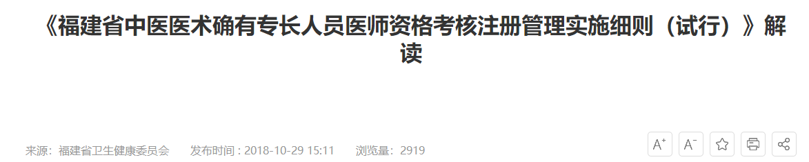 【通知原文】福建省中醫(yī)醫(yī)術(shù)確有專長(zhǎng)人員醫(yī)師資格考核注冊(cè)管理實(shí)施細(xì)則(試行)