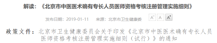 很多人都想知道“政策解讀《北京市中醫(yī)醫(yī)術(shù)確有專長(zhǎng)人員醫(yī)師資格考核注冊(cè)管理實(shí)施細(xì)則》”的內(nèi)容,關(guān)于“政策解讀《北京市中醫(yī)醫(yī)術(shù)確有專長(zhǎng)人員醫(yī)師資格考核注冊(cè)管理實(shí)施細(xì)則》”的問(wèn)題,醫(yī)學(xué)教育網(wǎng)小編搜集整理了相關(guān)信息,希望可以幫助到大家。