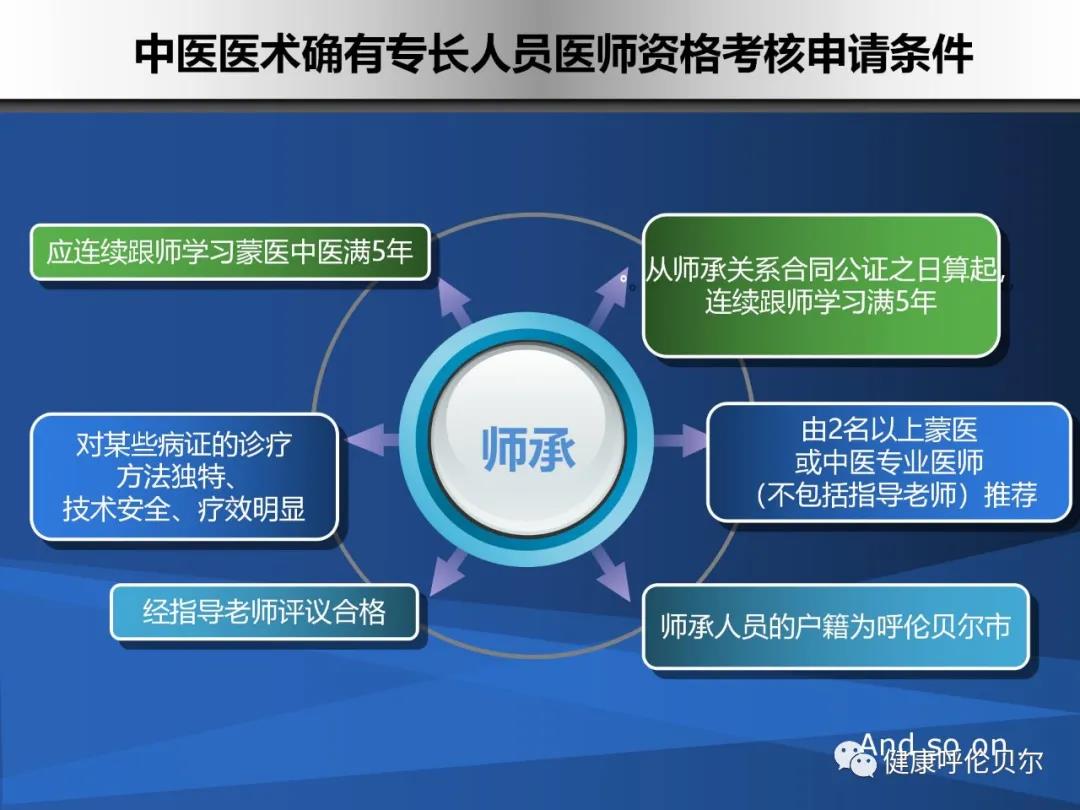 2.師承和確有專長(zhǎng)人員取得執(zhí)業(yè)助理醫(yī)師執(zhí)業(yè)證書后,在執(zhí)業(yè)醫(yī)師指導(dǎo)下,在醫(yī)療機(jī)構(gòu)中從事傳統(tǒng)醫(yī)學(xué)醫(yī)療工作滿5年,可以申請(qǐng)參加執(zhí)業(yè)醫(yī)師資格考試。