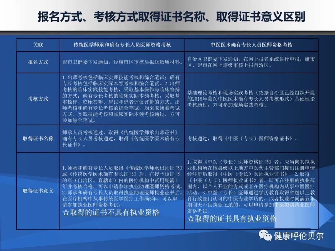 中醫(yī)醫(yī)術(shù)確有專長(zhǎng)人員醫(yī)師資格考核與傳統(tǒng)師承和確有專長(zhǎng)人員的區(qū)別很多考生都想知道,日前呼倫貝爾衛(wèi)健委做出了官方回復(fù),具體內(nèi)容醫(yī)學(xué)教育網(wǎng)小編搜集整理如下: