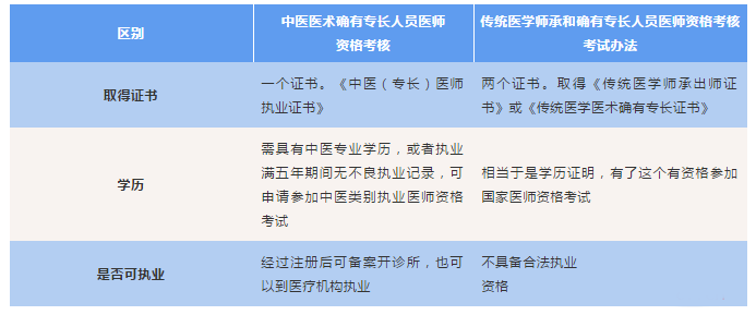 中醫(yī)醫(yī)術(shù)專長(zhǎng)考核與傳統(tǒng)醫(yī)學(xué)師承專長(zhǎng)考核區(qū)別: