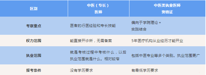 3、 中醫(yī)專長(zhǎng)考核 對(duì)比 中醫(yī)類執(zhí)業(yè)醫(yī)師資格證