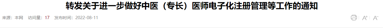 關(guān)于進一步做好中醫(yī)(專長)醫(yī)師電子化注冊管理等工作的通知