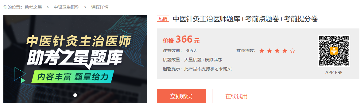 下載地址:中醫(yī)針灸主治醫(yī)師助考之星題庫(kù)下載入口>>