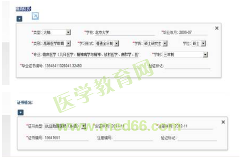 答:只有已獲得“執(zhí)業(yè)助理醫(yī)師”并報(bào)考“執(zhí)業(yè)醫(yī)師”的考生,需填寫“獲得執(zhí)業(yè)助理醫(yī)師資格年月”(即《醫(yī)師資格證書》中的發(fā)證年月格式如:2005-03)和“執(zhí)業(yè)助理醫(yī)師注冊(cè)登記號(hào)”(即《醫(yī)師執(zhí)業(yè)證書》中的注冊(cè)登記號(hào)碼),其他考生不必填寫。
