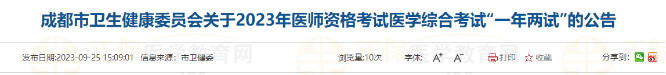 四川考區(qū)成都市2023年中醫(yī)助理醫(yī)師醫(yī)學(xué)綜合考試“一年兩試”報(bào)名公告