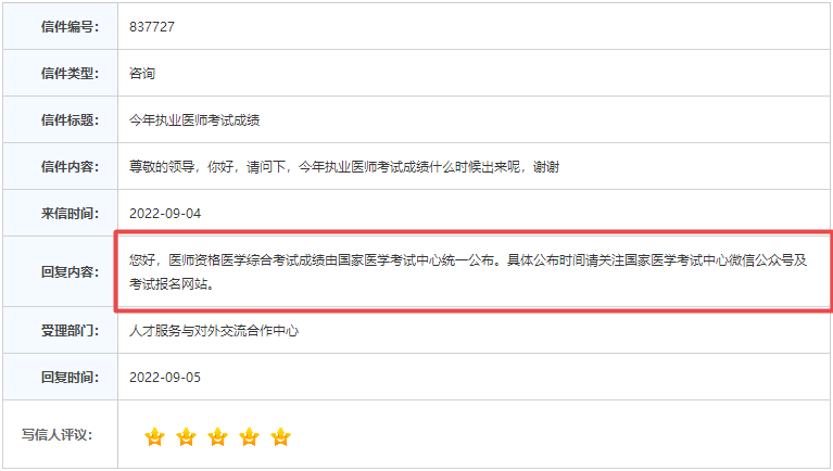 全國2022年中醫(yī)執(zhí)業(yè)助理醫(yī)師資格筆試考試成績何時出