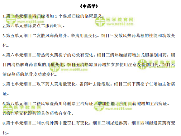 2020年中醫(yī)執(zhí)業(yè)助理醫(yī)師考試《中藥學》官方教材變動