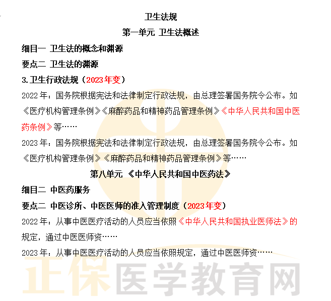 2023年中醫(yī)執(zhí)業(yè)助理醫(yī)師考試官方教材已發(fā)布,醫(yī)學(xué)教育網(wǎng)老師為大家整理“2023年中醫(yī)執(zhí)業(yè)助理醫(yī)師官方教材《衛(wèi)生法規(guī)》科目變動(dòng)詳情”供大家了解, 具體內(nèi)容如下:
