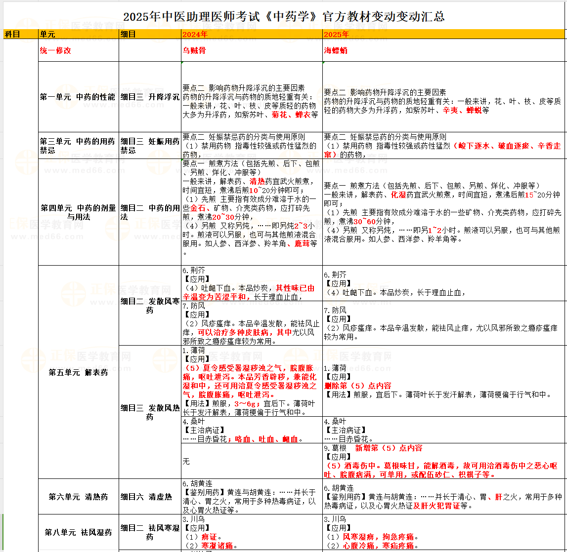 2025年國家中醫(yī)執(zhí)業(yè)助理醫(yī)師資格考試《中藥學(xué)》官方教材已發(fā)布,醫(yī)學(xué)教育網(wǎng)專業(yè)老師為大家梳理變動內(nèi)容如下: