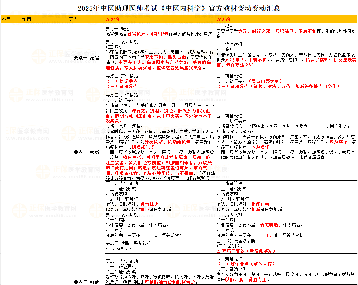2025年中醫(yī)助理醫(yī)師考試《中醫(yī)內(nèi)科學》官方教材變動變動匯總
