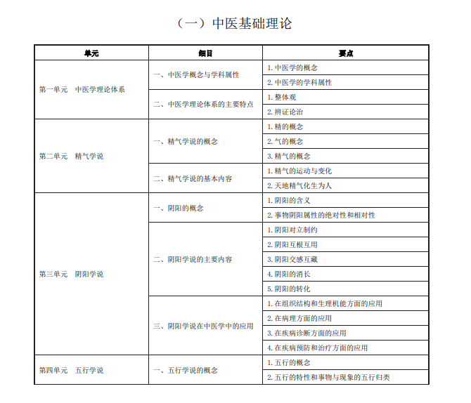 中醫(yī)基礎(chǔ)理論考試大綱2020