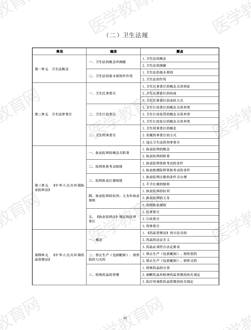 “2021年中醫(yī)執(zhí)業(yè)助理醫(yī)師《衛(wèi)生法規(guī)》考試大綱(附件下載)”文章醫(yī)學(xué)教育網(wǎng)小編搜集整理,更多醫(yī)考信息、備考資料、模擬試題請(qǐng)關(guān)注醫(yī)學(xué)教育網(wǎng)。