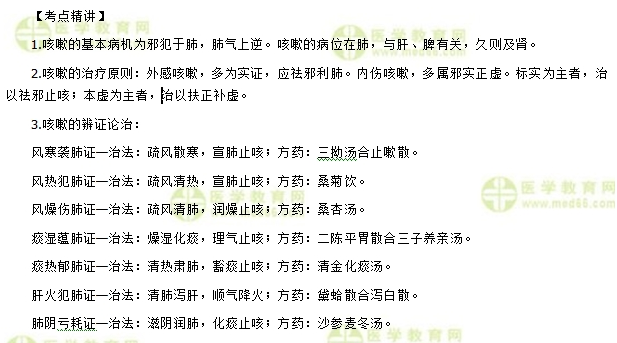 關(guān)于“中醫(yī)執(zhí)業(yè)助理醫(yī)師中醫(yī)內(nèi)科學(xué)考點(diǎn):咳嗽的辨證論治”相關(guān)內(nèi)容,相信報(bào)考中醫(yī)執(zhí)業(yè)助理醫(yī)師考試的考生都在關(guān)注,為方便大家了解,在此醫(yī)學(xué)教育網(wǎng)小編為大家整理如下內(nèi)容: