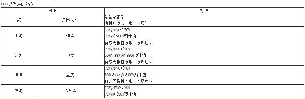 注:以吸入支氣管擴張劑后的FEV1為基礎的分級。