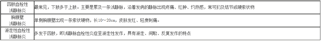 1.初期(急性期):在淺層脈絡(luò)(靜脈)徑路上出現(xiàn)條索狀柱,患處疼痛,皮膚發(fā)紅,觸之較硬,捫之發(fā)熱,按壓疼痛明顯,一般無全身癥狀。