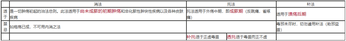 中醫(yī)外科疾病治法中“外科內(nèi)治法三個總則消、托、補(bǔ)的定義與適應(yīng)癥”知識點