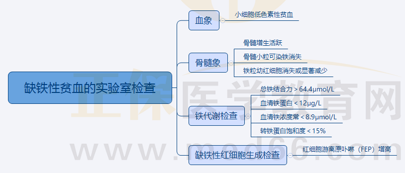 2022年中醫(yī)執(zhí)業(yè)助理醫(yī)師【內(nèi)科學(xué)】科目思維導(dǎo)圖考點(diǎn)梳理:缺鐵性貧血的實(shí)驗(yàn)室檢查