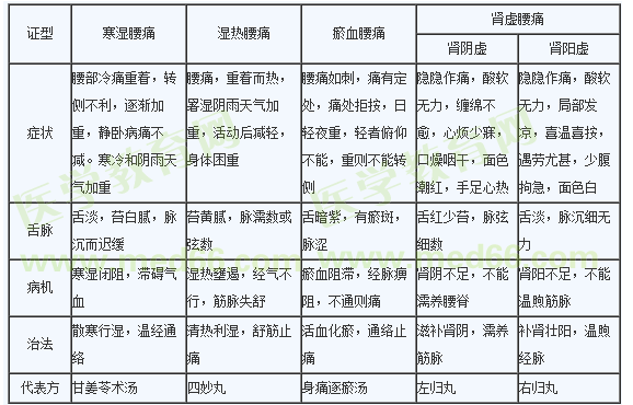 腰痛的辨證論治: