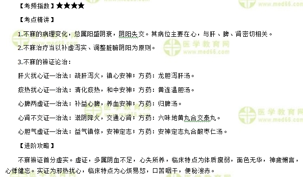 中醫(yī)助理醫(yī)師考試復習時間越來越緊張,如果我們知道了考試的高頻考點,并且在復習中與做題相結(jié)合,這樣對于學習會相對輕松很多。醫(yī)學教育網(wǎng)編輯將“不寐——中醫(yī)助理醫(yī)師考試《中醫(yī)內(nèi)科學》章節(jié)測試習題訓練”分享給大家,希望對復習相關章節(jié)提供幫助。