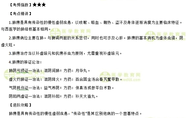 “中醫(yī)執(zhí)業(yè)助理醫(yī)師考試肺系病證常見(jiàn)考點(diǎn)試題精講——肺癆”的內(nèi)容,由醫(yī)學(xué)教育網(wǎng)編輯整理搜集,希望對(duì)正在備戰(zhàn)中醫(yī)執(zhí)業(yè)助理醫(yī)師考試的人提供幫助,更多備考干貨、復(fù)習(xí)資料及技巧經(jīng)驗(yàn),敬請(qǐng)關(guān)注醫(yī)學(xué)教育網(wǎng)中醫(yī)執(zhí)業(yè)助理醫(yī)師欄目。