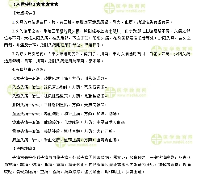 中醫(yī)執(zhí)業(yè)助理醫(yī)師《中醫(yī)內(nèi)科學(xué)》常見(jiàn)考點(diǎn)試題練習(xí)——頭痛