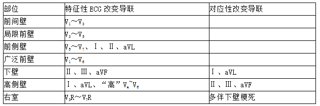 特征性改變:ST段抬高、病理性Q波、T波倒置。