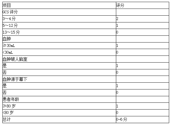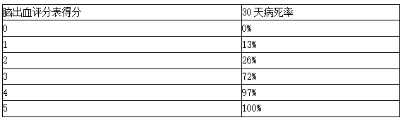綜合Glasgow昏迷量表評分錯果、血腫大小、血腫是否破入腦室、患者年齡等綜合判斷病情,估計死亡風(fēng)險。