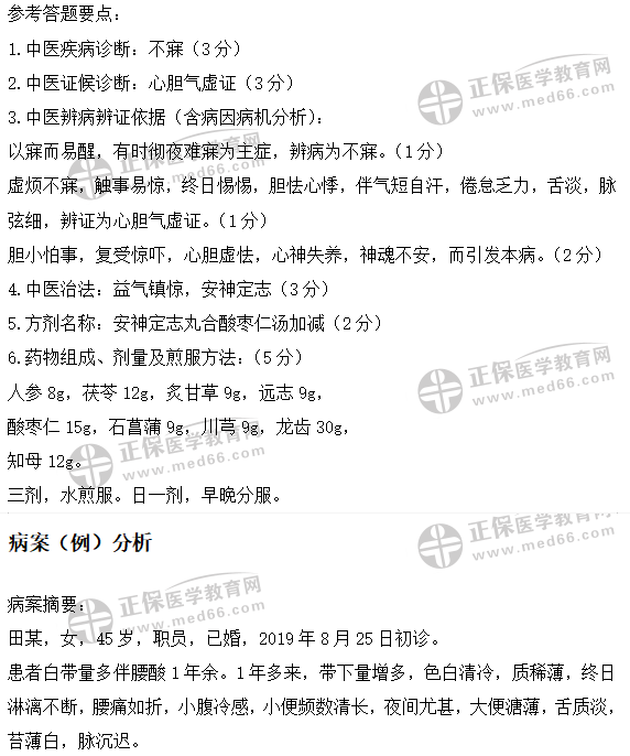 【原創(chuàng)】中醫(yī)助理執(zhí)業(yè)醫(yī)師病案分析考試?yán)}/評(píng)分標(biāo)準(zhǔn)
