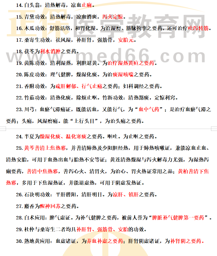 中藥學(xué)考點(diǎn)速記30條