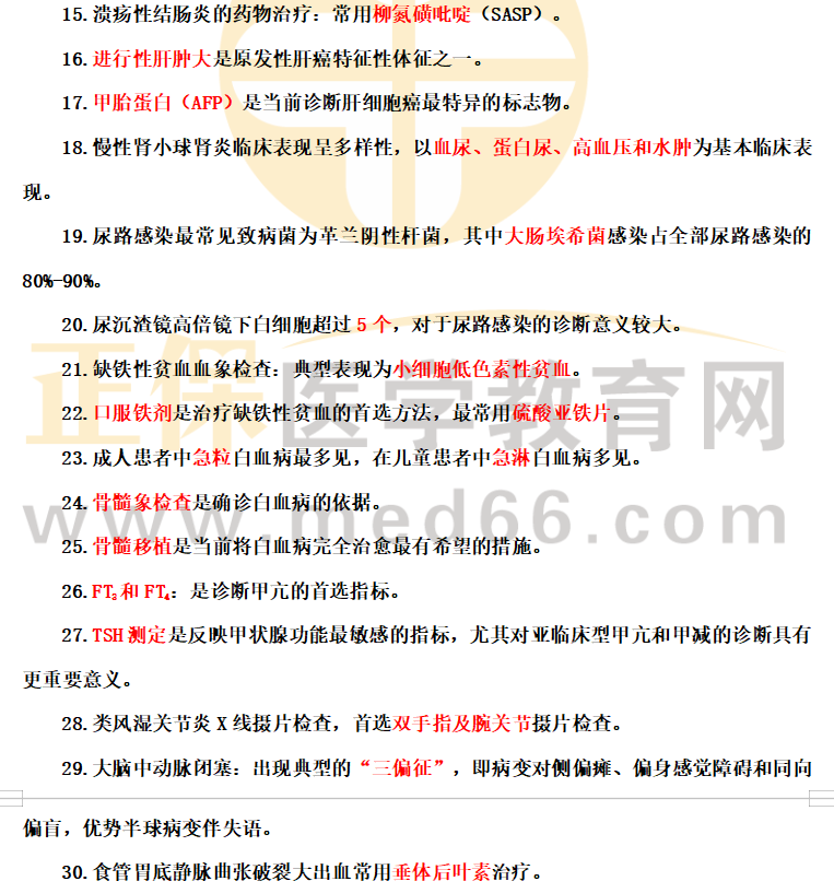 國家2021年中醫(yī)助理醫(yī)師考試二試考前急救考點《內(nèi)科學(xué)》30條