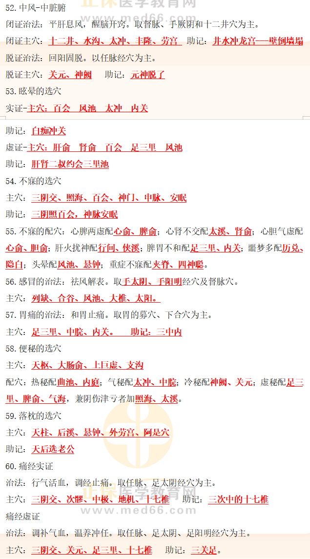 49.痹證的配穴:行痹配膈俞、血海;痛痹配腎俞、關(guān)元;著痹配陰陵泉、足三里;熱痹配大椎、曲池。另可根據(jù)疼痛的部位循經(jīng)配穴醫(yī)學(xué)|教育網(wǎng)。