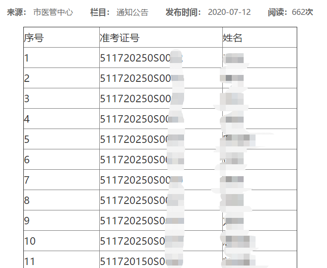 四川遂寧2020年7月12日中醫(yī)助理醫(yī)師實(shí)踐技能考試成績(jī)不合格人員名單