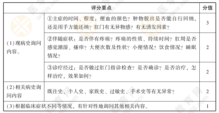 中醫(yī)助理醫(yī)師實(shí)踐技能【病史采集】04號(hào)題:男,37歲,司機(jī),常年久坐,近一個(gè)月大便帶血,便后有腫物脫出