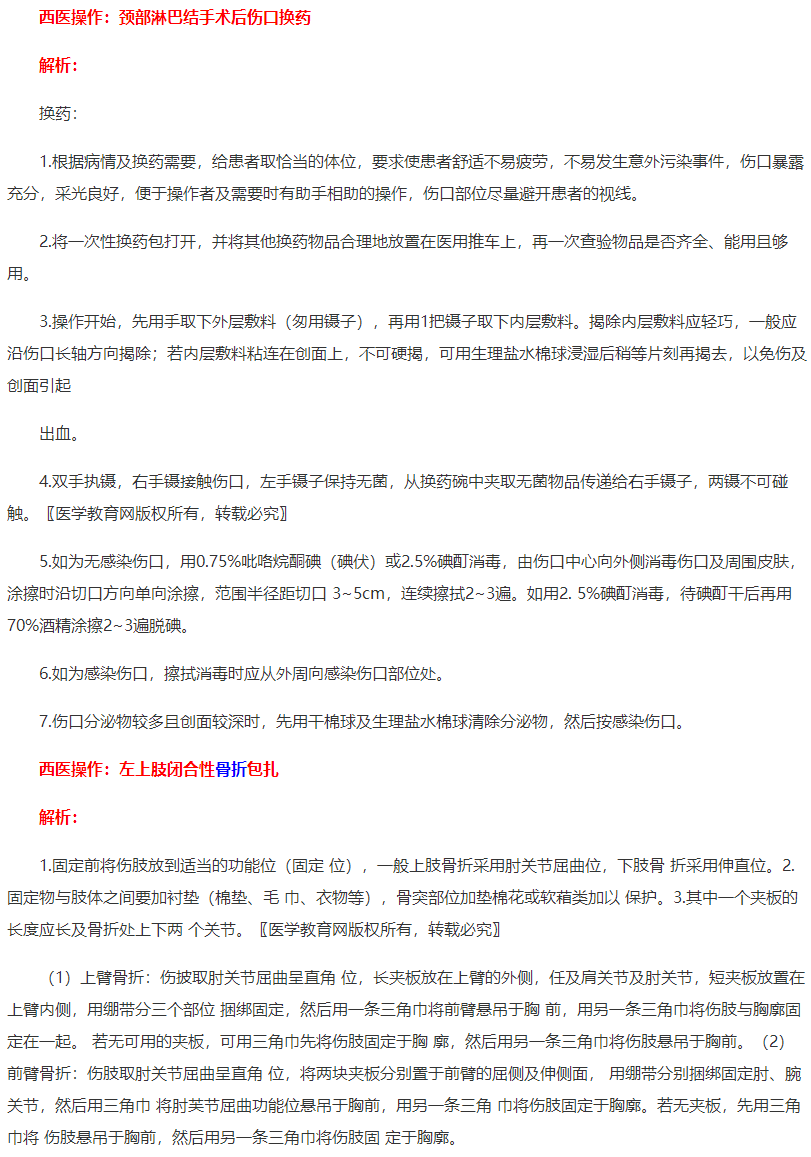 注:考試中西醫(yī)操作只有一題