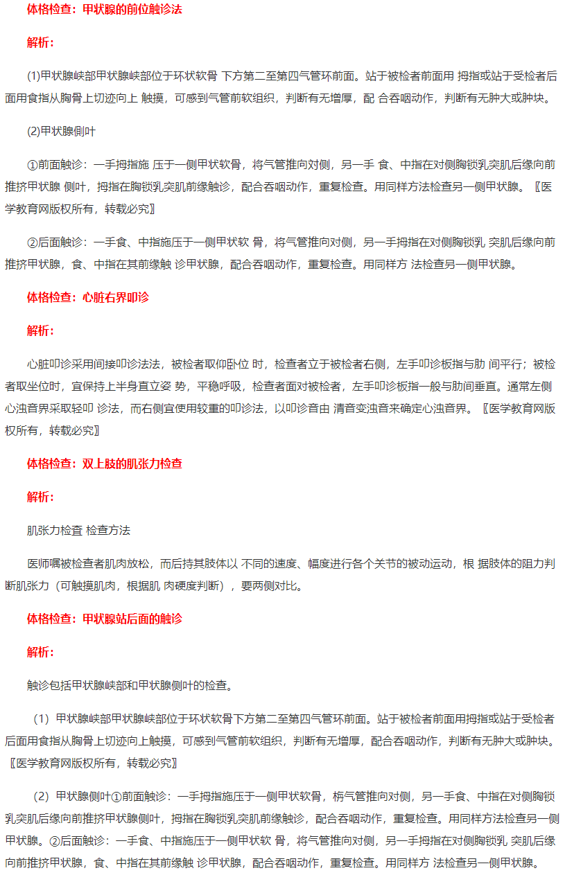 注:考試中體格檢查只有一題