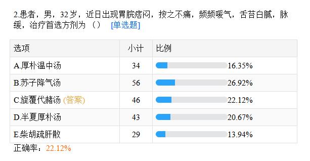 【正確率22.12%】患者,男,32歲,近日出現(xiàn)胃脘痞悶,按之不痛,頻頻喛氣,舌苔白膩,脈緩,治療首選方劑為 ( )