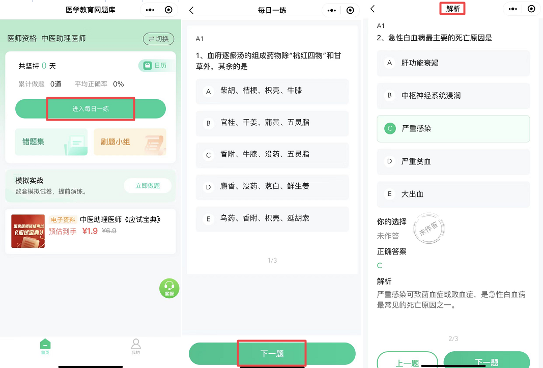 1.請在醫(yī)學(xué)教育網(wǎng)題庫小程序內(nèi),進行查看和做題。