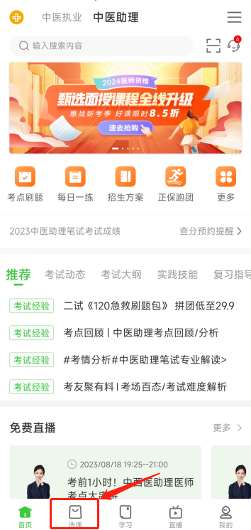 第一步:進(jìn)入醫(yī)學(xué)教育網(wǎng)APP,點(diǎn)擊“選課”。
