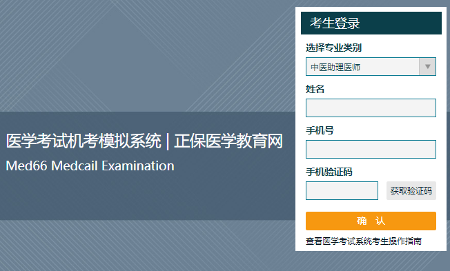 考生打開考試系統(tǒng)后,(國家醫(yī)學考試網(wǎng)官網(wǎng):輸入兩次準考證號和有效證件號碼),然后點擊“進入”按鈕,進入考試系統(tǒng)。http://www2.nmec.org.cn/exam/
