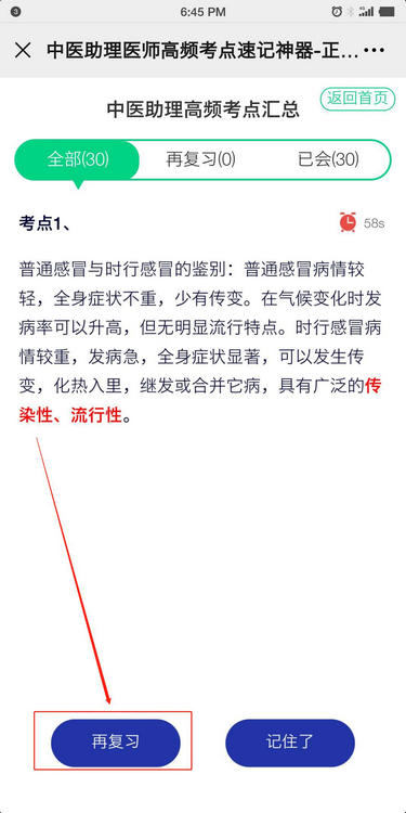 三、沒(méi)有記住的考點(diǎn)可以點(diǎn)擊“再?gòu)?fù)習(xí)”;