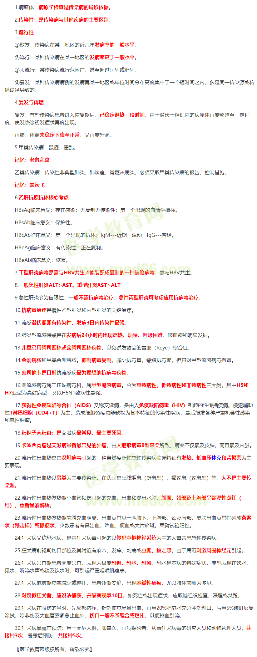 重點(diǎn)掌握知識(shí)匯總!中醫(yī)助理醫(yī)師考試“傳染病學(xué)”30條
