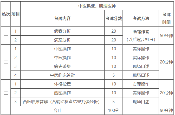 中醫(yī)助理技能考試各站考試內(nèi)容/所占分值
