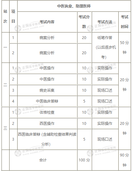 中醫(yī)醫(yī)師資格實(shí)踐技能各站考試項(xiàng)目設(shè)置與有關(guān)內(nèi)容一覽表